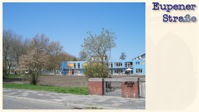 . Im Hintergrund ist der blaue Neubau der katholischen Kindertagesstätte St. Willehad an der Frenssenstraße zu sehen.