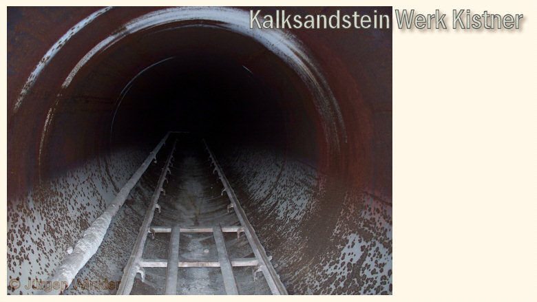 Der Innenraum eines Autoklaven mit den Schienen zum Einfahren der mit den Rohlingen, bzw. zum Ausfahren der mit den fertigen Kalksandsteinen beladenen Loren.