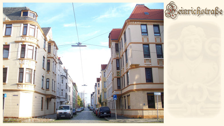 in Richtung Norden. Das Hochhaus im Hintergrund steht bereits jenseits der Rickmersstraße im Neubauviertel an der Nelly-Sachs-Straße.